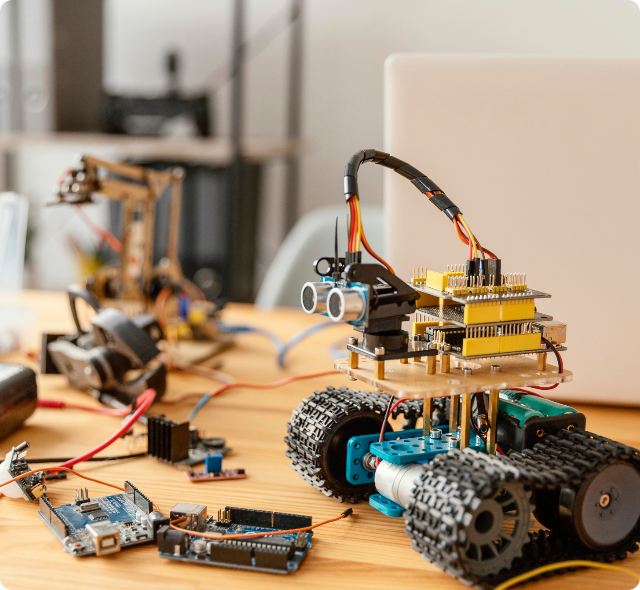 Robotics system development and prototyping Robotic Process Automation (RPA) for businesses AI integration for robotics and smart systems Educational robotics kits and training Drone design, programming, and deployment